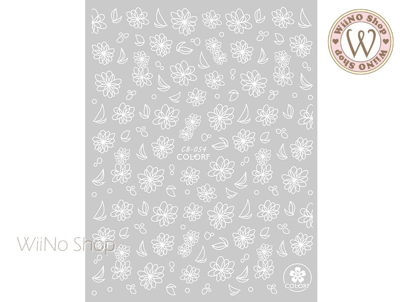 White Drawing Flower Adhesive Nail Art Sticker - 1 pc (CB-054W)