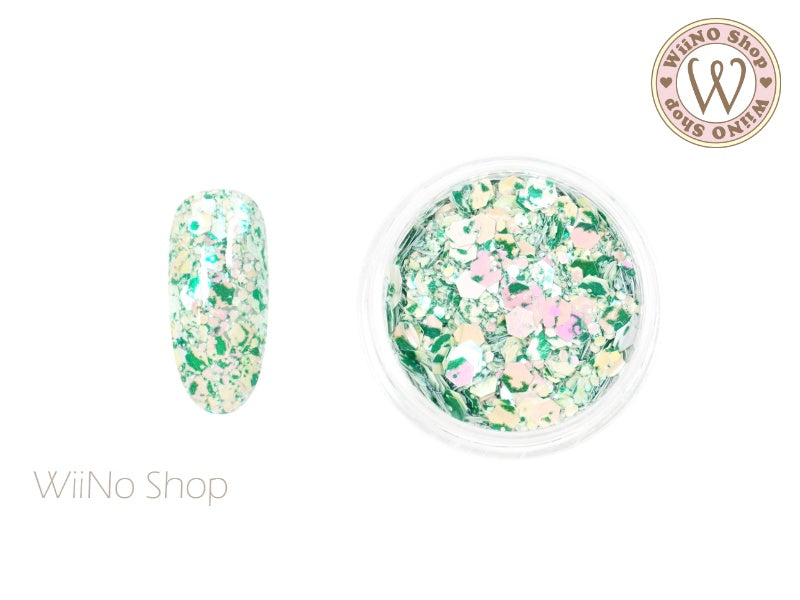 Green Marble Iridescent Hexagon Mix with Glitter Dust (HR05)