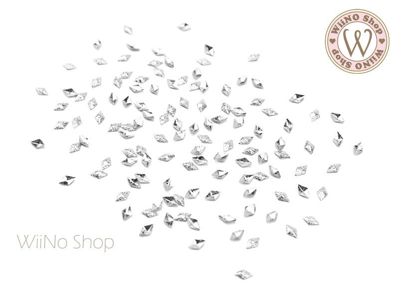 2 x 4mm Silver Textured Diamond Shape Metal Studs - 25 pcs