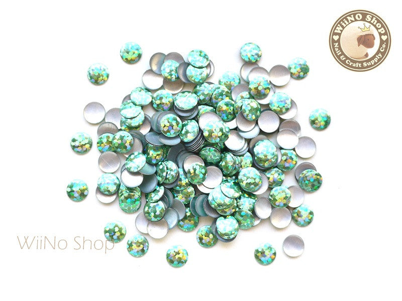 6mm Green Holographic Round Metal Studs - 50 pcs