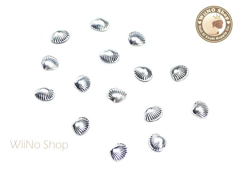 5mm Silver Clam Seashell Metal Studs - 10 pcs