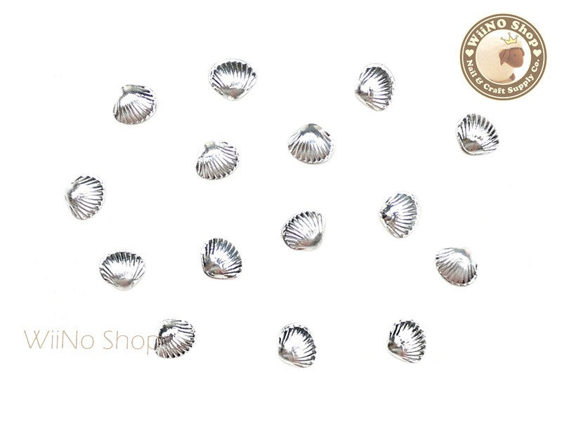 5mm Silver Clam Seashell Metal Studs - 10 pcs