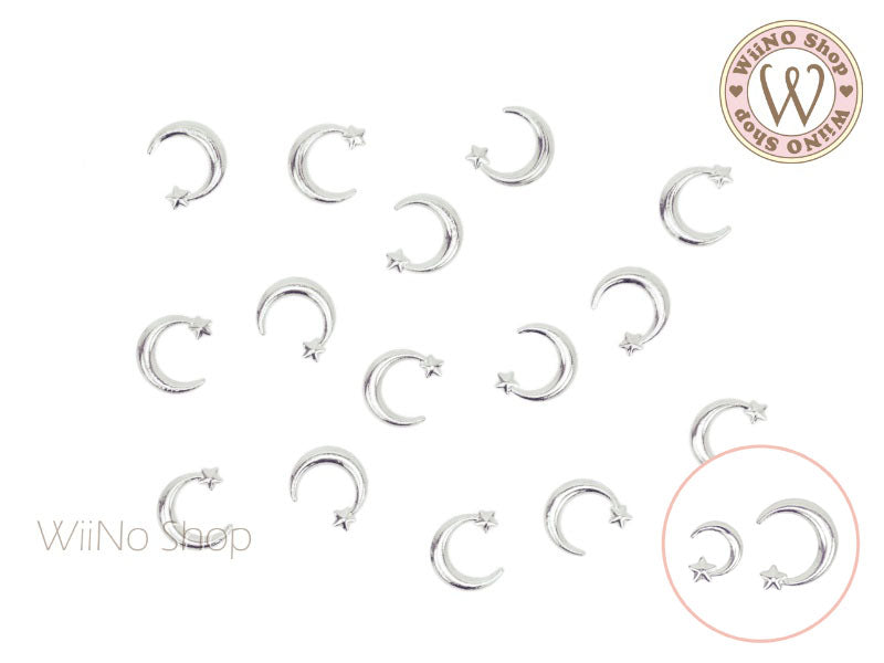 Silver Moon & Star Metal Studs - 10 pcs (5mm/8mm)