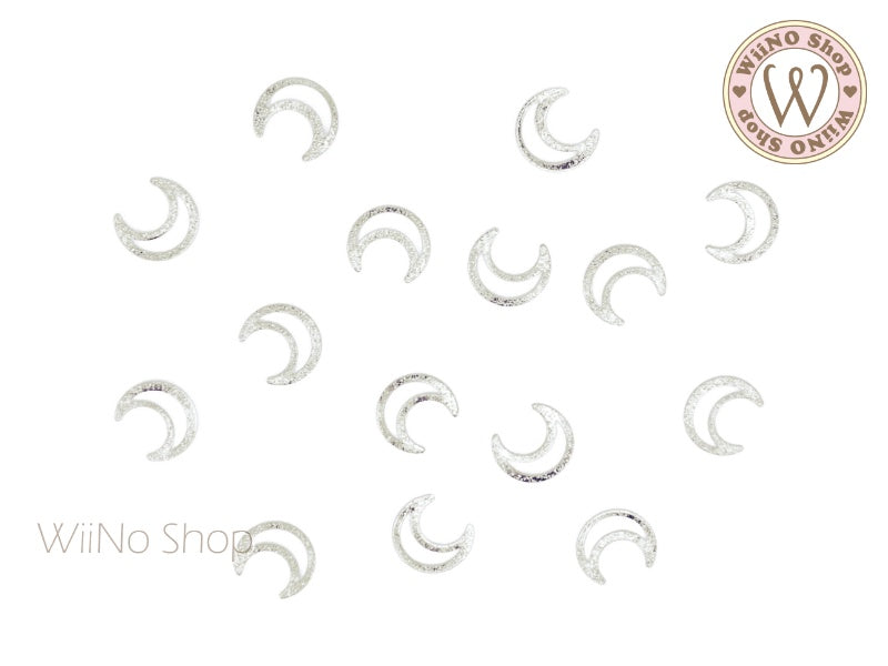Silver Textured Hollow Moon Metal Studs - 10 pcs