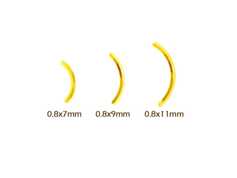 Gold Square Curved Tube Metal Studs - 50 pcs (0.8x7/9/11mm)