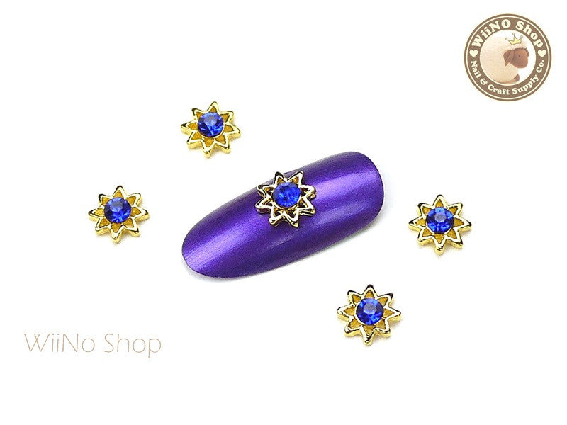 Gold Hollow Sun with Blue Crystal Nail Art Metal Charm - 2 pcs