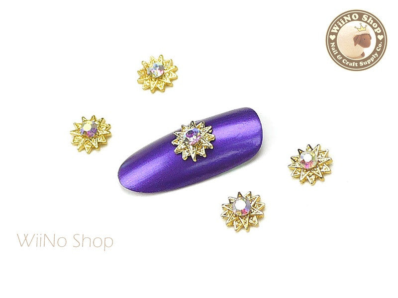 Gold Pattern Sun with AB Clear Crystal Nail Art Metal Charm - 2 pcs