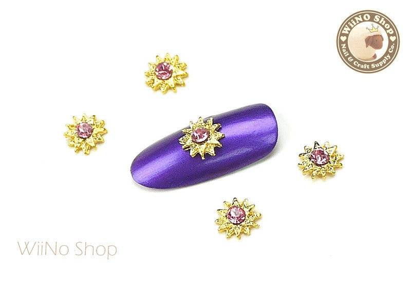 Gold Pattern Sun with Pink Crystal Nail Art Metal Charm - 2 pcs