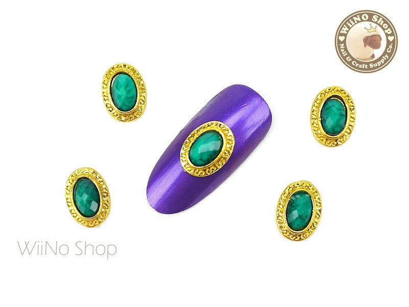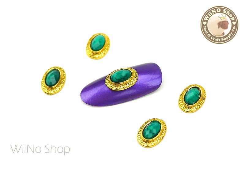 Green Turquoise Rhinestone Oval Frame Nail Metal Charm - 2 pcs