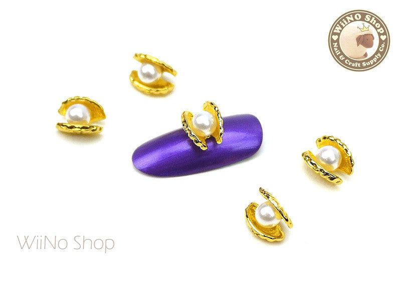 Pearl in Clam Shell 3D Nail Metal Charm - 2 pcs