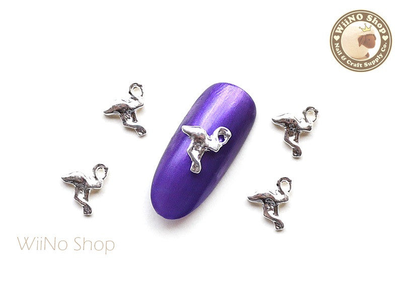 Silver Flamingo Nail Metal Charm - 2 pcs