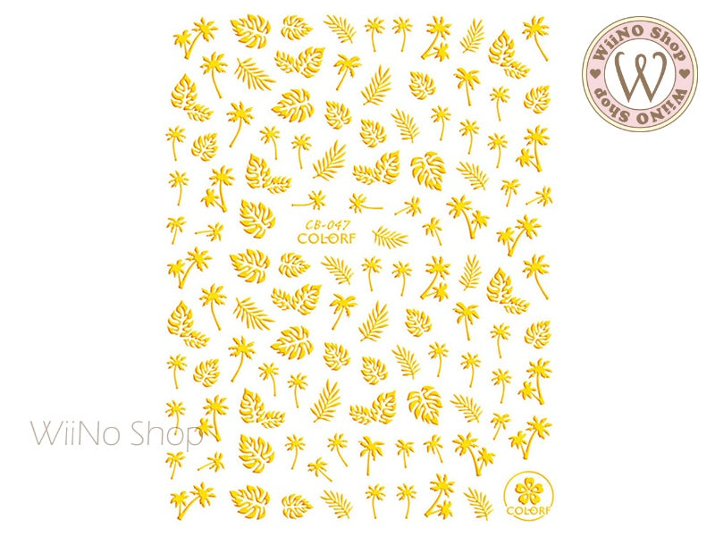 Gold Palm Tree Leaves Adhesive Nail Art Sticker - 1 pc (CB-047G)
