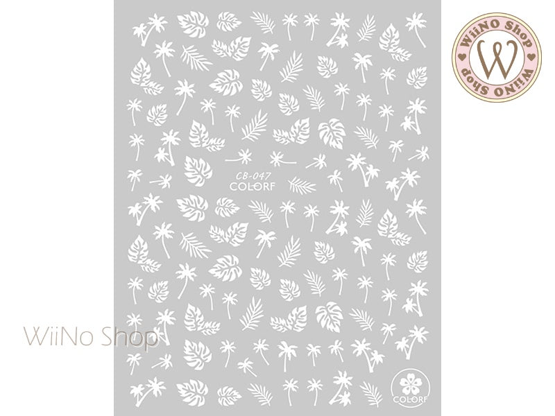 White Palm Tree Leaves Adhesive Nail Art Sticker - 1 pc (CB-047W)