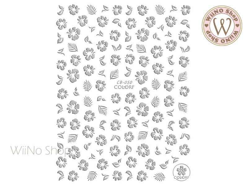 Silver Hibiscus Flower Adhesive Nail Art Sticker - 1 pc (CB-050S)