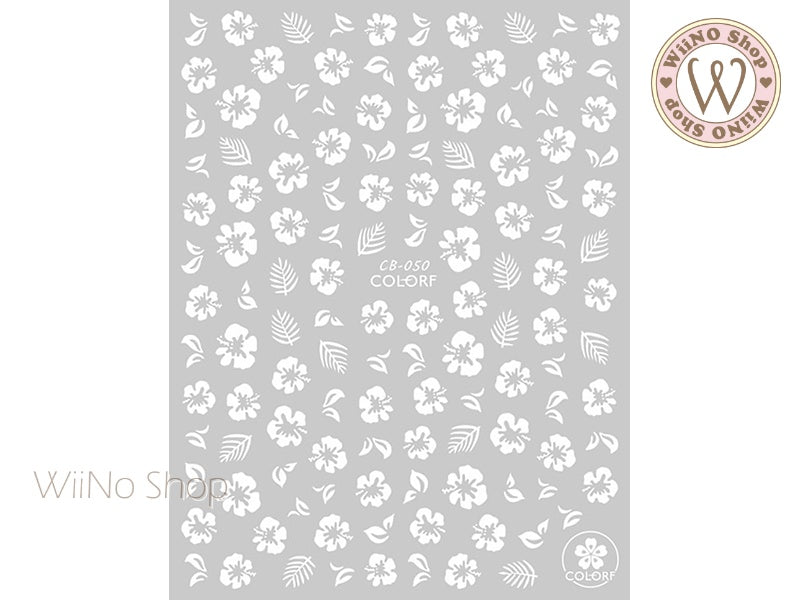 White Hibiscus Flower Adhesive Nail Art Sticker - 1 pc (CB-050W)