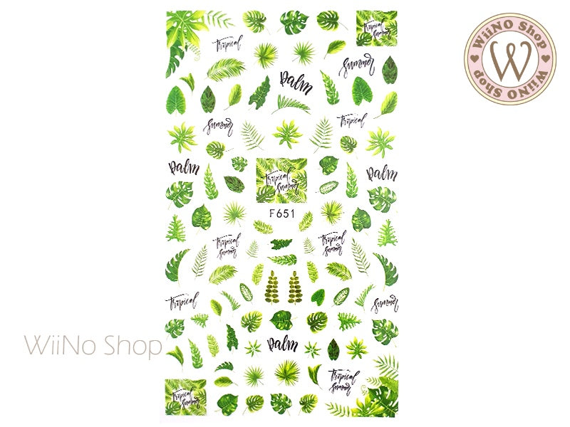 Green Leaves Adhesive Nail Art Sticker - 1 pc (F651)