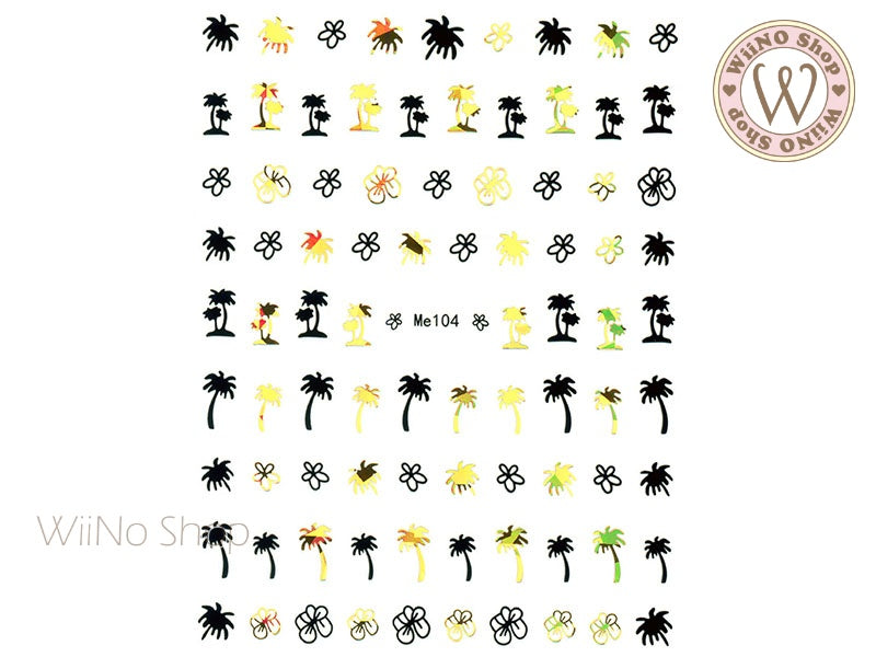 Palm Tree & Leaves Gold Holographic Adhesive Nail Art Sticker - 1 pc (Me105-BGH)
