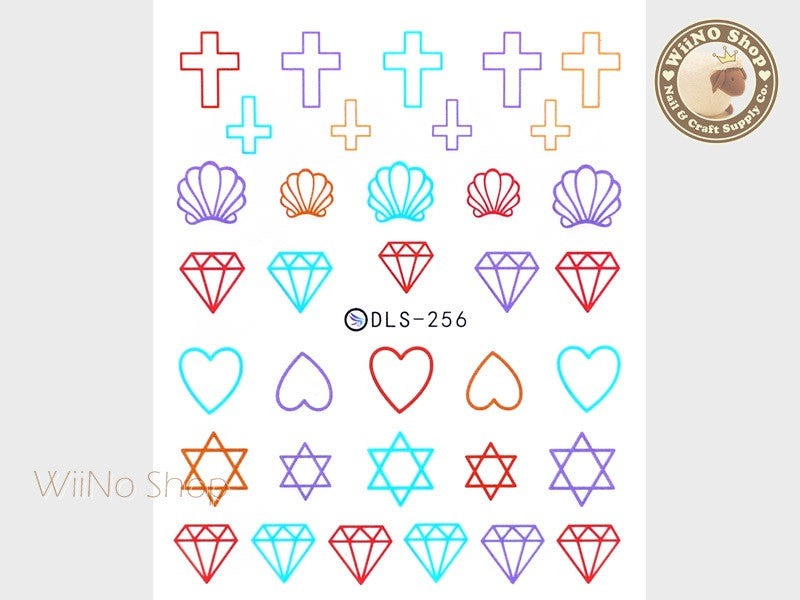 Colorful Seashell Cross Diamond Water Slide Nail Art Decals - 1pc (DLS-256)