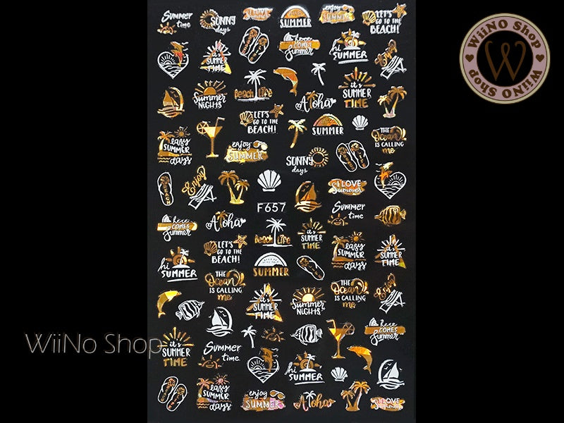Summer Time White Gold Holographic Adhesive Nail Art Sticker - 1 pc (F657-WGH)