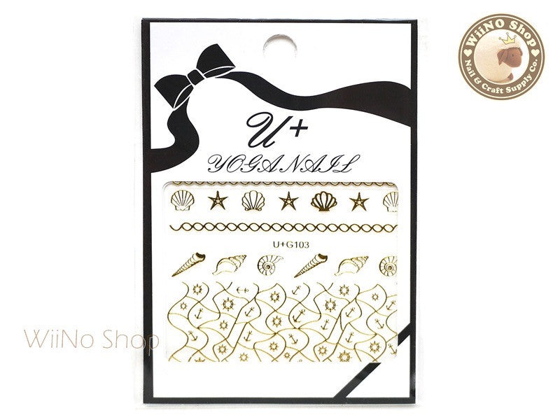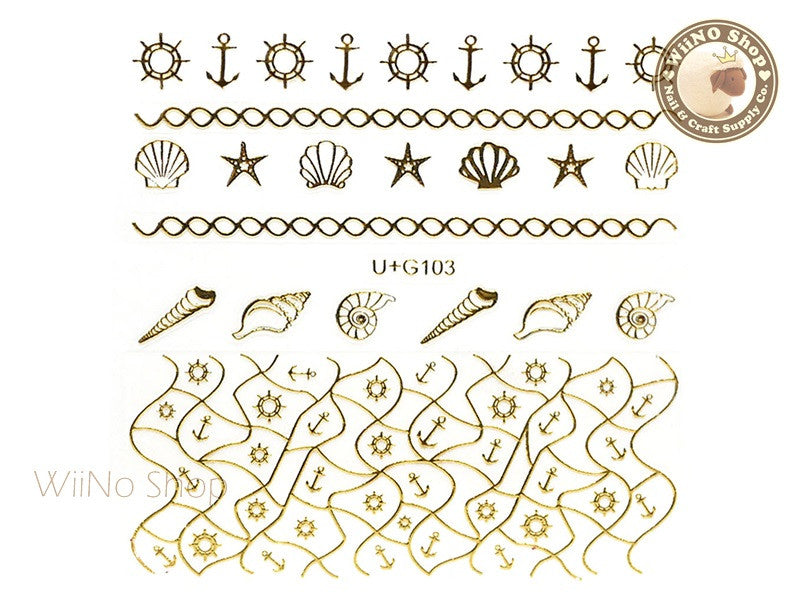 Gold Anchor Ship Wheel Seashell Adhesive Nail Art Sticker - 1 pc (U+G103)