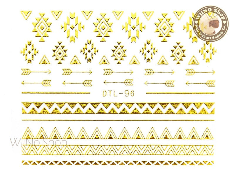Gold Arrow Geometric Pattern Nail Art Sticker - 1 pc (DTL-96G)