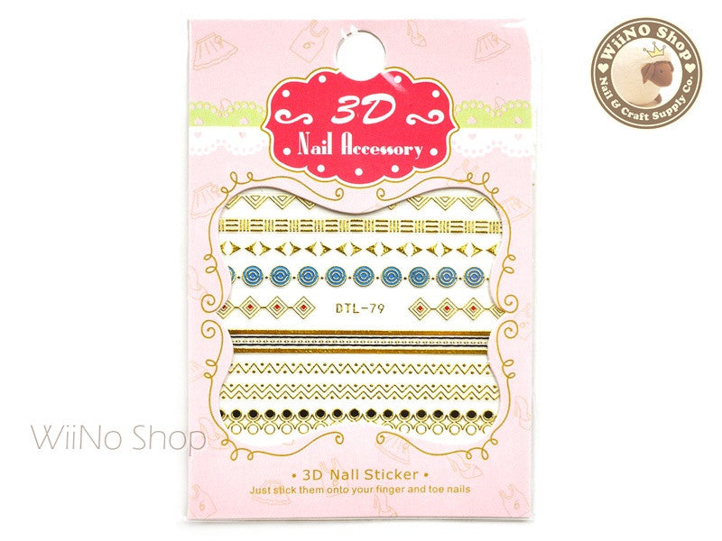 Gold Color Geometric Pattern Nail Art Sticker - 1 pc (DTL-79G)