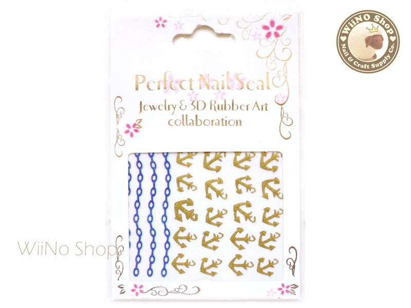 Gold Glitter Anchor Blue Chain Adhesive Nail Sticker Nail Art - 1 pc (TFN2)