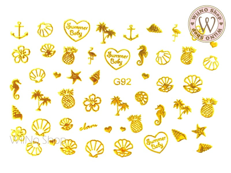 Gold Summer Time Adhesive Nail Art Sticker - 1 pc (G-92)