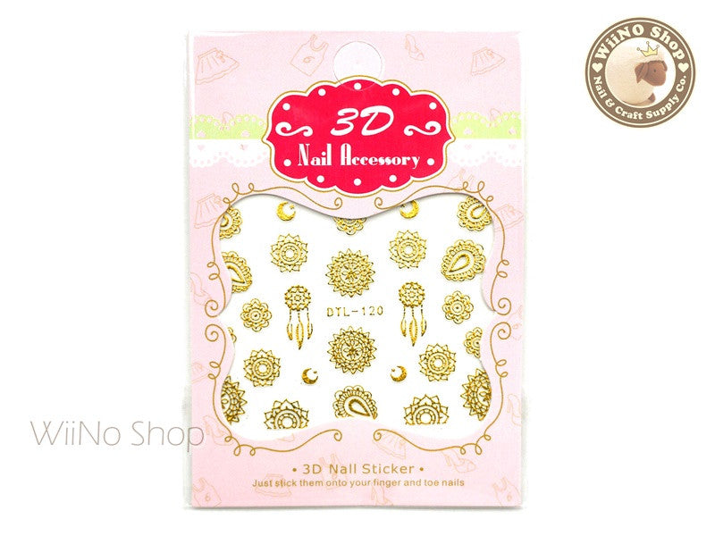 Gold Sun & Moon Tribal Adhesive Nail Art Sticker - 1 pc (DTL-120G)