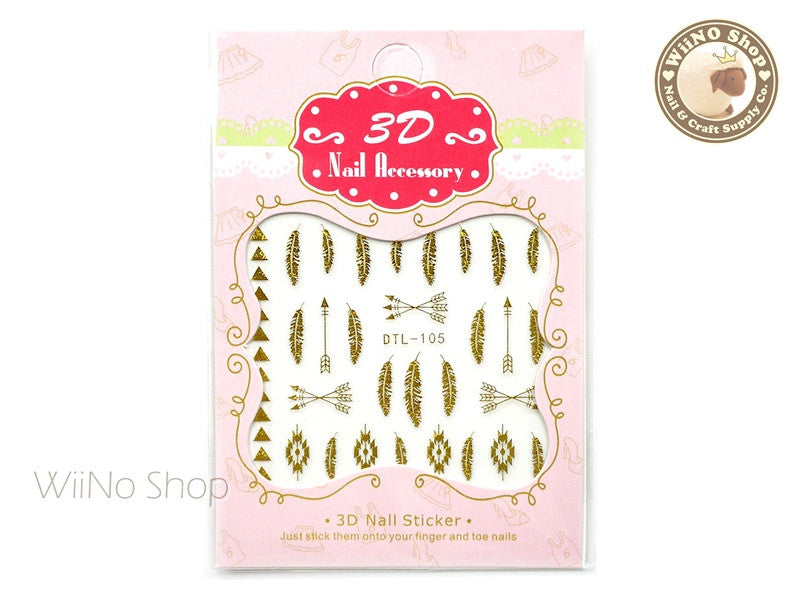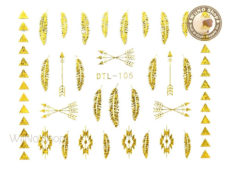 Gold Tribal Feather Adhesive Nail Art Sticker - 1 pc (DTL-105G)