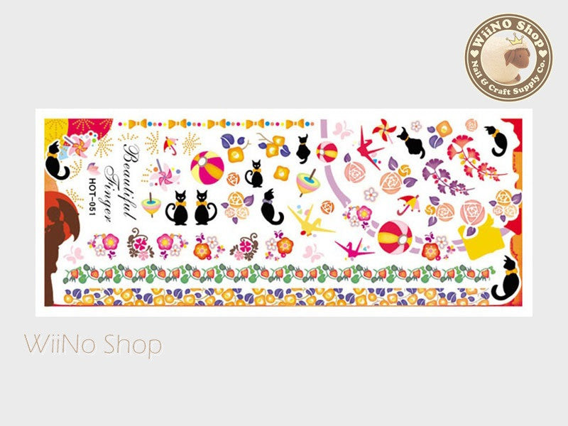 Japanese Summer Fiesta Orange Water Slide Nail Art Decals - 1pc (HOT-051)