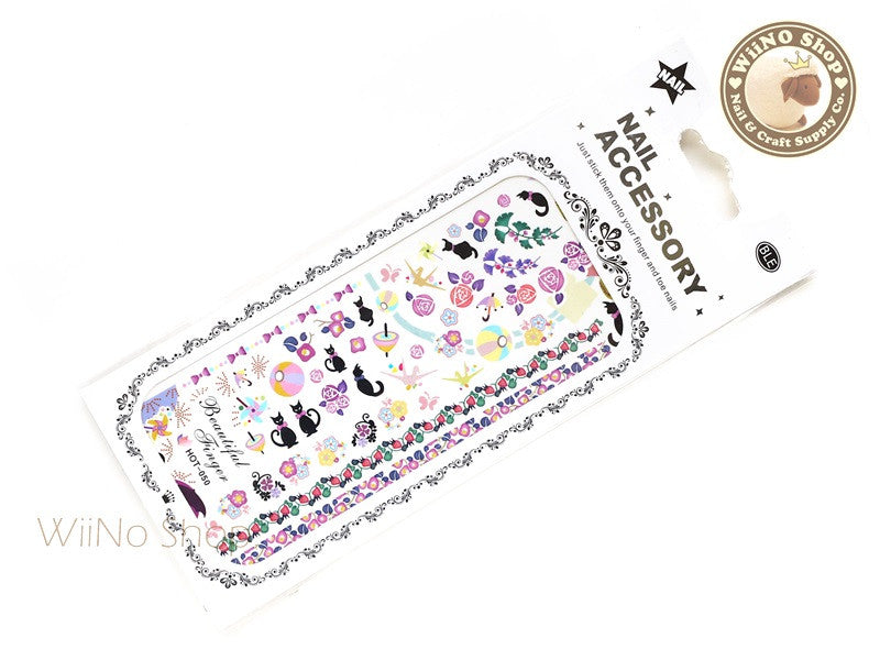 Japanese Summer Fiesta Purple Water Slide Nail Art Decals - 1pc (HOT-050)