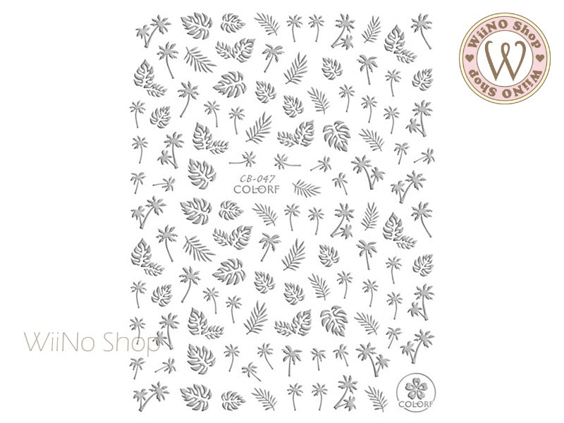 Silver Palm Tree Leaves Adhesive Nail Art Sticker - 1 pc (CB-047S)