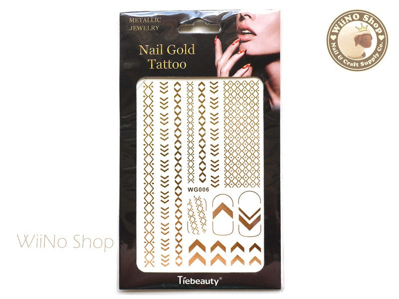 WG006 Gold Metallic Nail Jewelry Tattoos - 1 pc