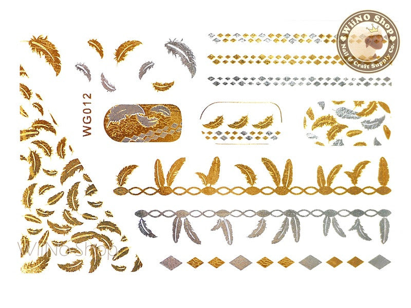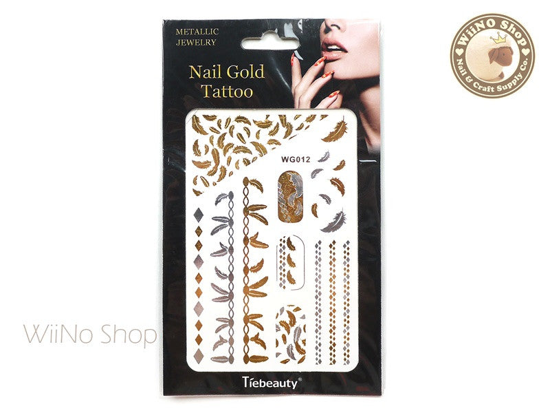 WG012 Gold Metallic Nail Jewelry Tattoos - 1 pc