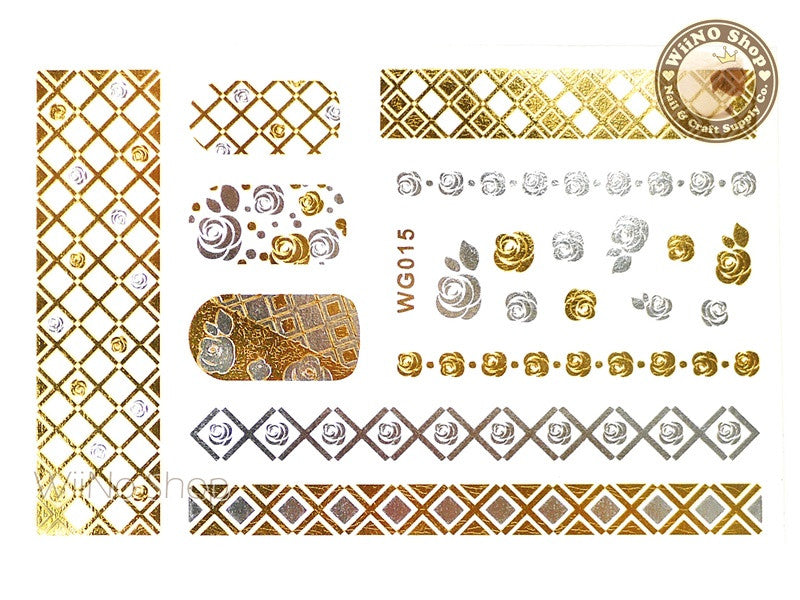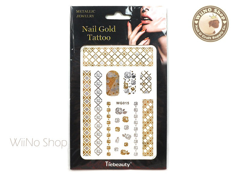 WG015 Gold Metallic Nail Jewelry Tattoos - 1 pc