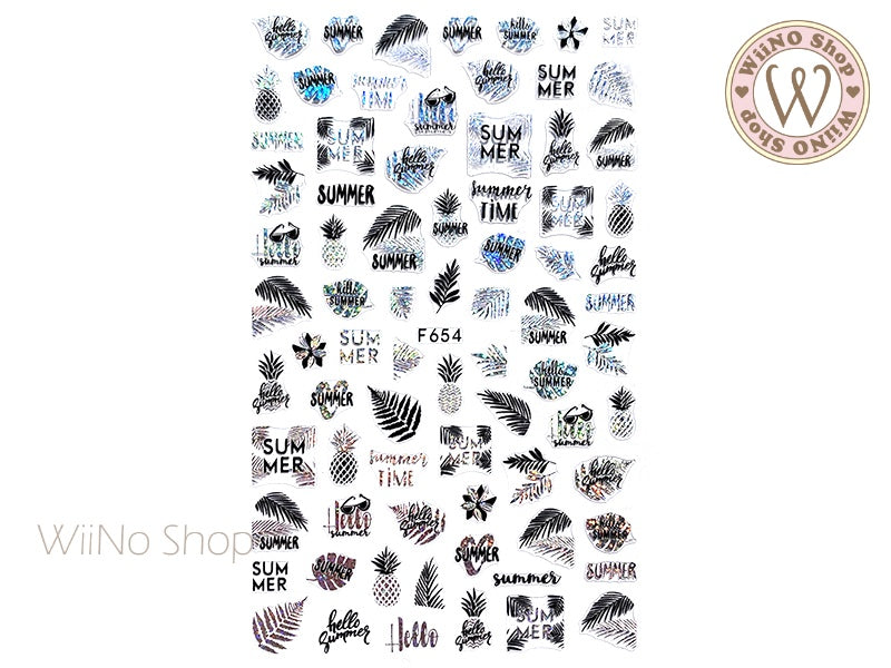 Hello Summer Black Silver Holographic Adhesive Nail Art Sticker - 1 pc (F654-BSH)