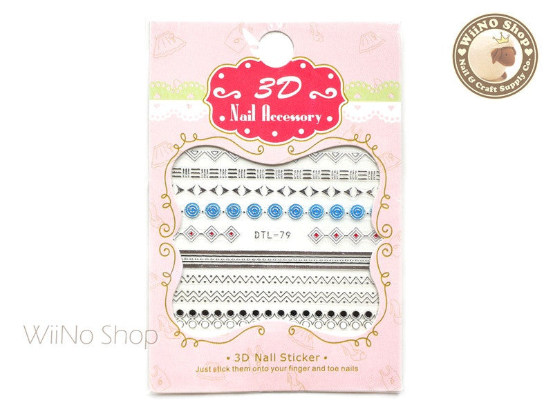 Silver Color Geometric Pattern Nail Art Sticker - 1 pc (DTL-79S)