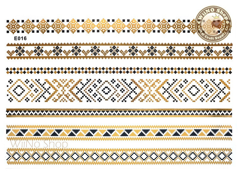 E016 Gold Black Metallic Temporary Jewelry Tattoos - 1 pc