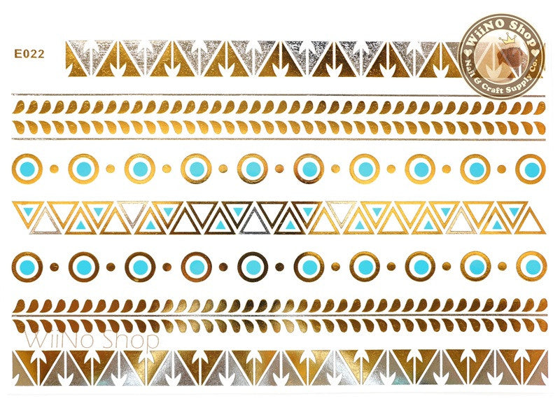 E022 Gold Silver Blue Metallic Temporary Jewelry Tattoos - 1 pc