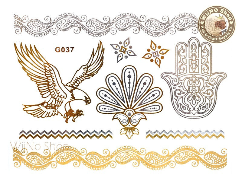 G037 Gold Silver Metallic Temporary Jewelry Tattoos - 1 pc