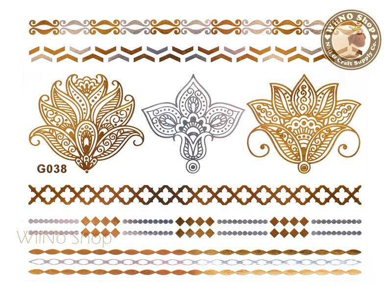 G038 Gold Silver Metallic Temporary Jewelry Tattoos - 1 pc