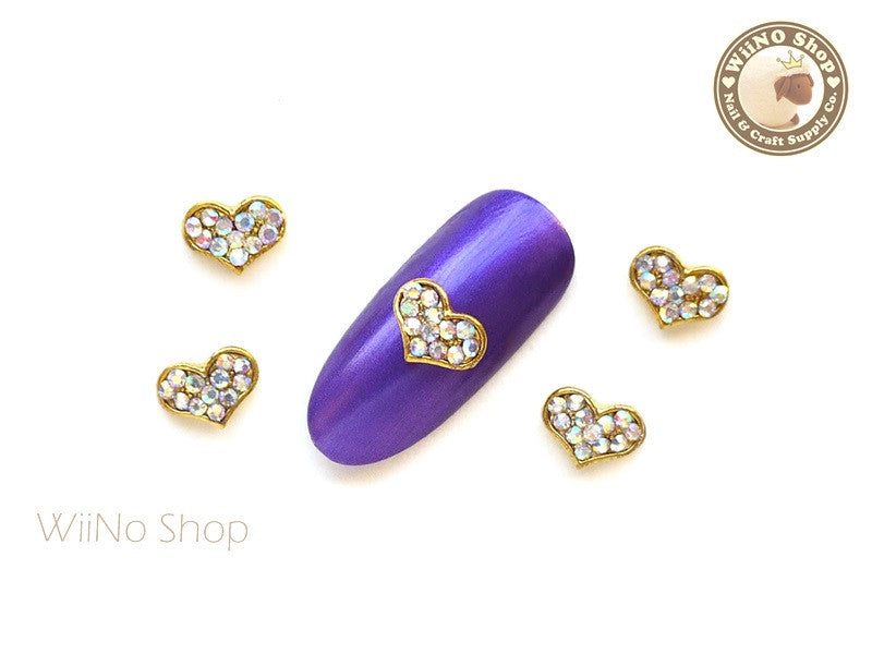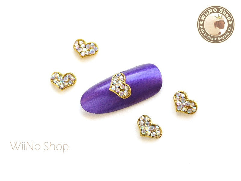 Gold AB Crystal Heart Nail Metal Charm Nail Art - 2 pcs