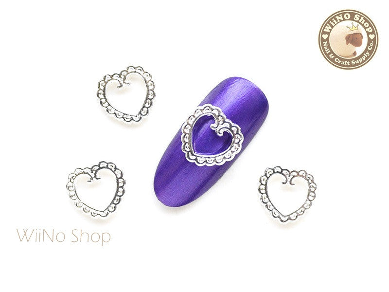 Heart Lace Frame Silver Nail Metal Charm - 2 pcs