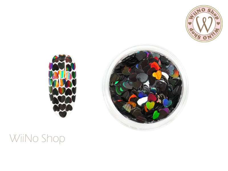 3mm Black Holographic Heart Glitter