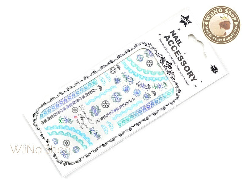 Blue Gradient Lace Pattern Water Slide Nail Art Decals - 1pc (HOT-154)