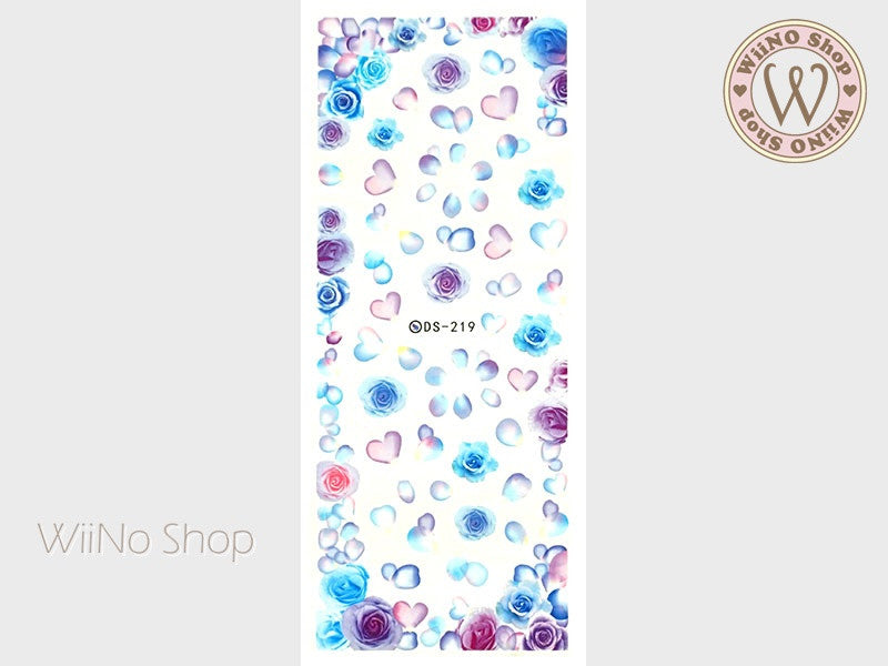 Blue Rose Petals Water Slide Nail Art Decals - 1 pc (DS-219)