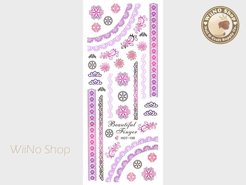 Purple Gradient Lace Pattern Water Slide Nail Art Decals - 1pc (HOT-156)