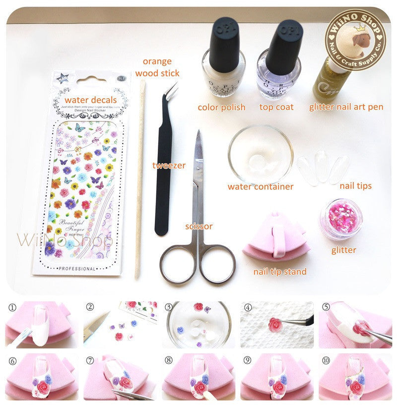 8. Make sure there is no water in between decals and nail tips. If there is use tool gentle to press the decals make the water come out and use paper towel to remove the water.