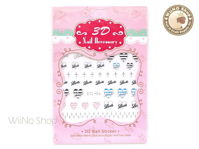 Silver Love Striped Heart Nail Art Sticker - 1 pc (DTL-56S)